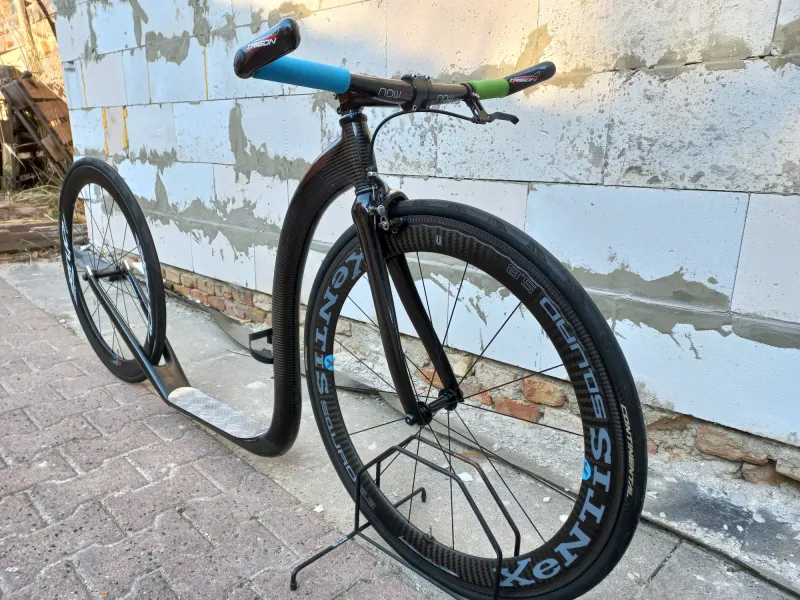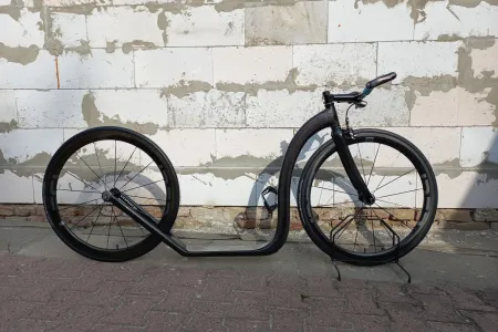 Bei den Lenkern von Trettrollern sehen wir einige wichtige Punkte - einen tiefergelegten Griff mit einem bequemen Griff und einem Bremshebel für ein flinkes Fahren und einen erhöhten Griff, um den Rücken zu entspannen, vielleicht auf der Höhe des geraden Lenkers. Die Herstellung von Carbon ermöglicht auch anspruchsvolle Formen, so dass es im Vergleich zu anderen Materialien relativ einfach ist, das richtige Ergebnis zu erzielen.